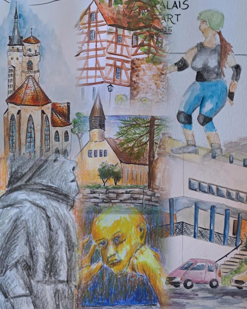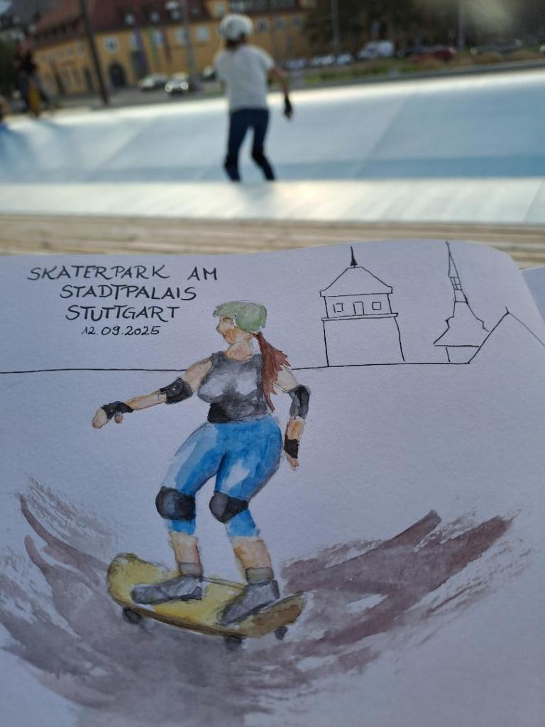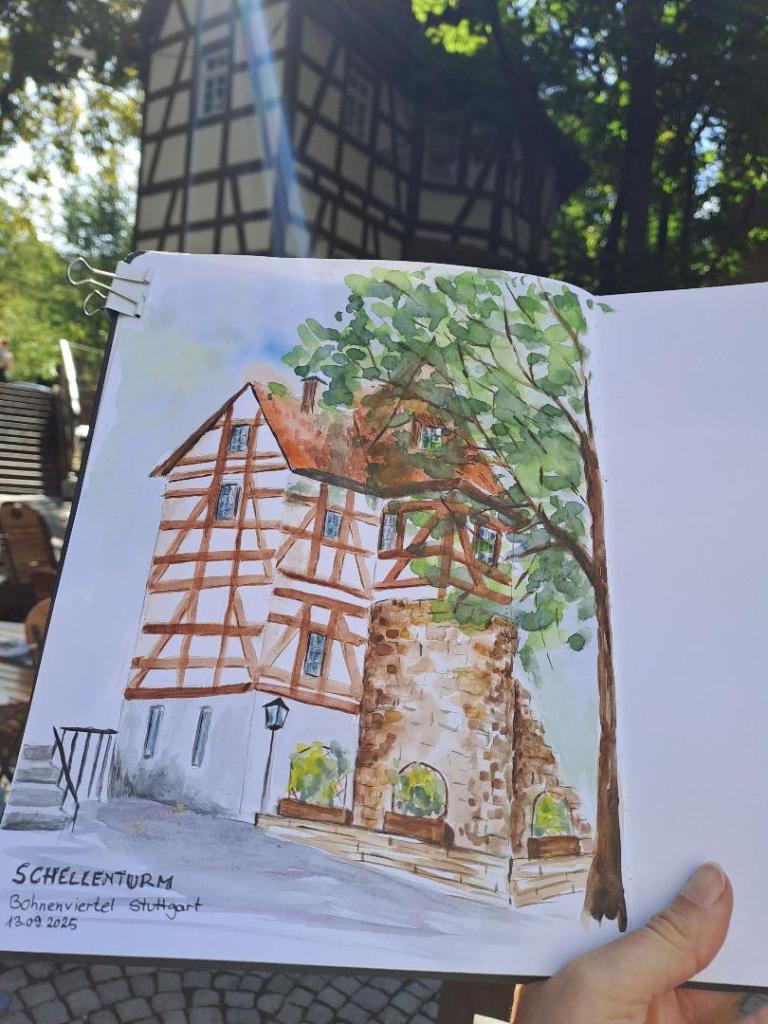 Durch das Beobachten fängt man an, die Umgebung ganz anders wahr zu nehmen. Ich war schon in Stuttgart, aber so wirklich gesehen habe ich die Stadt nicht. Plötzlich sind dort liebevolle Details, merkwürdige Szenen und heimelige Ecken, die ich sonst nicht wahrnehme. Beim Zeichnen fokussiert man sich auf das Motiv, die Farben und das Papier. Dies entspannt und lässt neues entstehen. Die Kreativität fängt an zu tanzen an und manchmal kommt was ganz anderes raus wie geplant. Hier gibt es kein Richtig oder Falsch ! Am Ende fängt man einen winzigen Moment, ein Gefühl ein und bringt dies auf das Papier. Es ist wie eine Auszeit vom Alltag, ein eintauchen in eine eigene Welt, die genauso ist, wie ich es möchte: Ohne den ganzen Irrsinn des realen Lebens! Handgemacht, ohne KI und ohne technischen Schnickschnack, dafür mit ganz viel Achtsamkeit entsteht ein persönlicher Moment auf Papier.